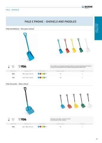 + 80°C Pala monoblocco con impugnatura sagomata. Adatta a movimentare quantità elevate di alimenti.