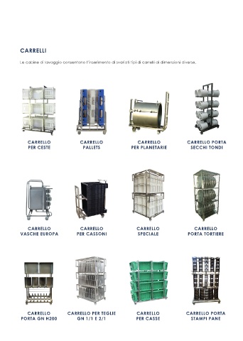 Le cabine di lavaggio consentono l’inserimento di svariati tipi di carrelli di dimensioni diverse.