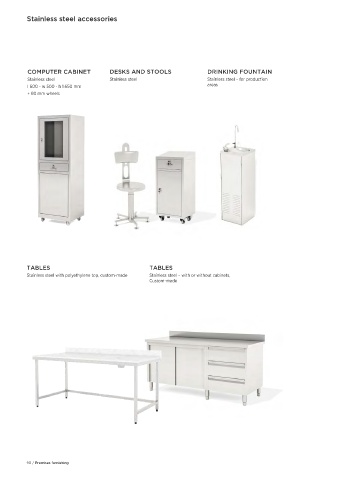 Stainless steel with polyethylene top, custom-made Stainless steel – with or without cabinets,