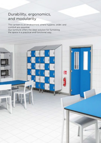 Durability, ergonomics, and modularity The canteen is an environment where hygiene, order, and comfort are essential. Our furniture offers the ideal solution for furnishing the space in a practical and functional way.