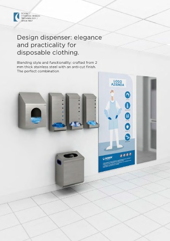 Design dispenser: elegance and practicality for disposable clothing. Blending style and functionality: crafted from 2 mm thick stainless steel with an anti-cut finish. The perfect combination.
