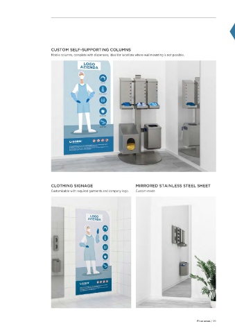 Mobile columns, complete with dispensers, ideal for locations where wall mounting is not possible.