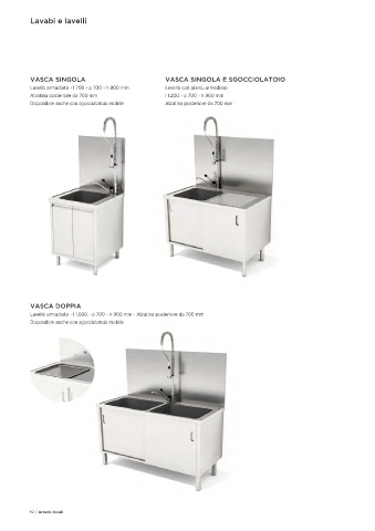 Lavello armadiato - l 700 - p 700 - h 900 mm Lavello con piano, armadiato Lavello armadiato - l 1.600 - p 700 - h 900 mm - Alzatina posteriore da 700 mm