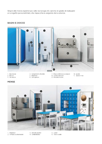 2. Specchi inox 4. Extreme medium 6. Tappeto Silver 2. Box wc 5. Dispenser 8. Canaline di scolo 11. Specchi inox