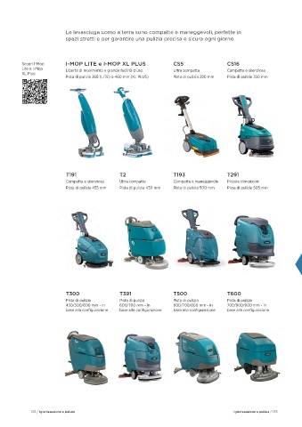 Compatta per ambienti interni, Progettata per elevata produttività Con tecnologia avanzata per consumo Lite e I-Mop Libertà di movimento e grande facilità d’uso Ultra compatta Compatta e silenziosa