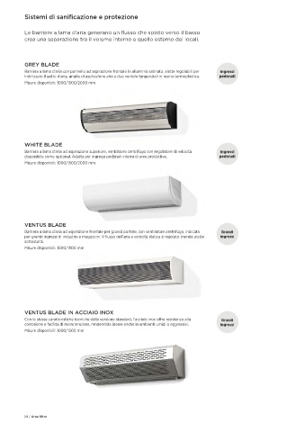 indirizzare il getto d’aria, griglia di aspirazione aria e due ventole tangenziali in resina termoplastica. pedonali Le barriere a lama d’aria impediscono