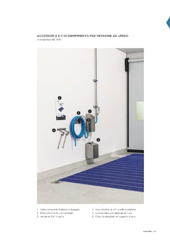 1. Carter contenente il sistema di dosaggio 4. Tubo flessibile da 3/4” e sella avvolgitubo