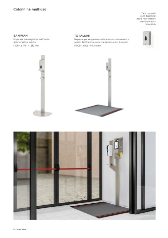 Dispenser per erogazione sanificante Dispenser per erogazione sanificante con azionamento a Pareti microforate per maggiore visibilità. Cerniere frizionate regolabili, cassetti inox, morsa e golfari per fissaggio