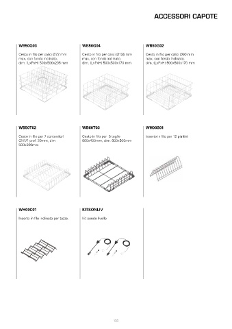 WB60G01 e vassoi Self-Service, dim.500x500 dim. 600x500 mm Inserto in filo inclinato per tazze. Kit sonde livello