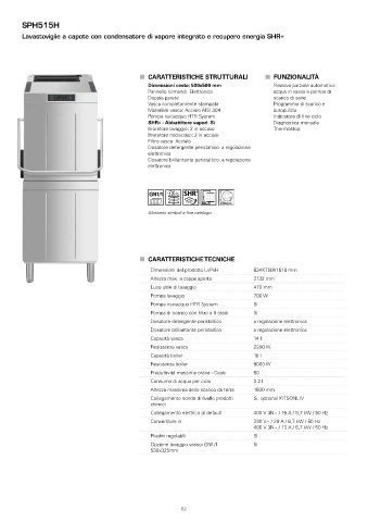 Lavastoviglie a capote con condensatore di vapore integrato e recupero energia SHR+