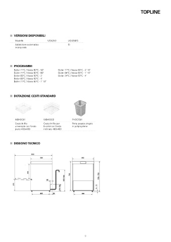 Dosatore brillantante peristaltico: a regolazione Boiler 85°C / Vasca 60°C - 2' Boiler 24°C / Vasca 60°C - 4'
