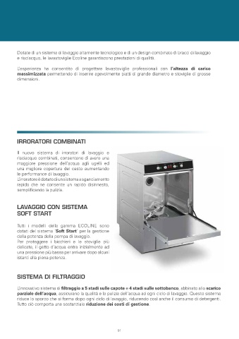 Le gamma delle lavastoviglie serie ECOLINE sono dotate di struttura a mono parete, vasca Dotate di un sistema di lavaggio altamente tecnologico e di un design combinato di bracci di lavaggio