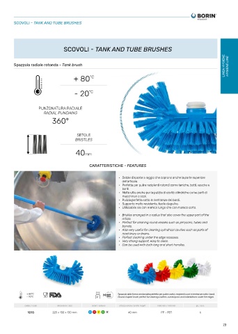 • Perfetta per pulire recipienti rotondi come taniche, botti, vasche e