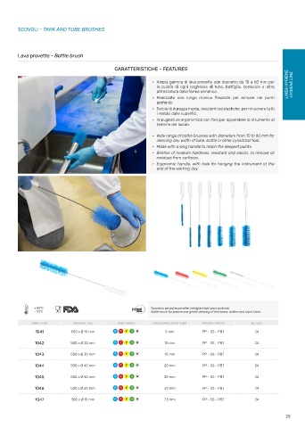 la pulizia di ogni larghezza di tubo, bottiglia, borraccia o altra LINEA HYGIENE HYGIENE LINE