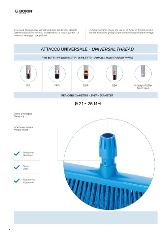 Sistema di fissaggio che permette l’utilizzo di tutti i tipi di filetto Fixing system that allows the use of all types of threads on the