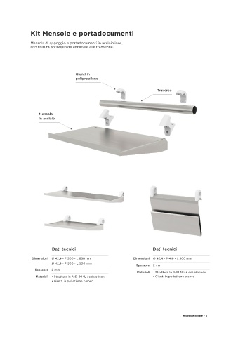 Mensola di appoggio e portadocumenti in acciaio inox,