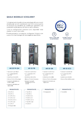 Tutti gli armadi di sanificazione della Serie AR sono dotati