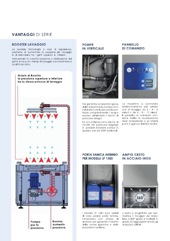 I modelli LP 1300 sono dotati Il cesto è progettato per per- I modelli LP 1300 possono essere equipaggiati con il sistema di riscaldamento a vapore indiretto. La tecnologia a vapore permette